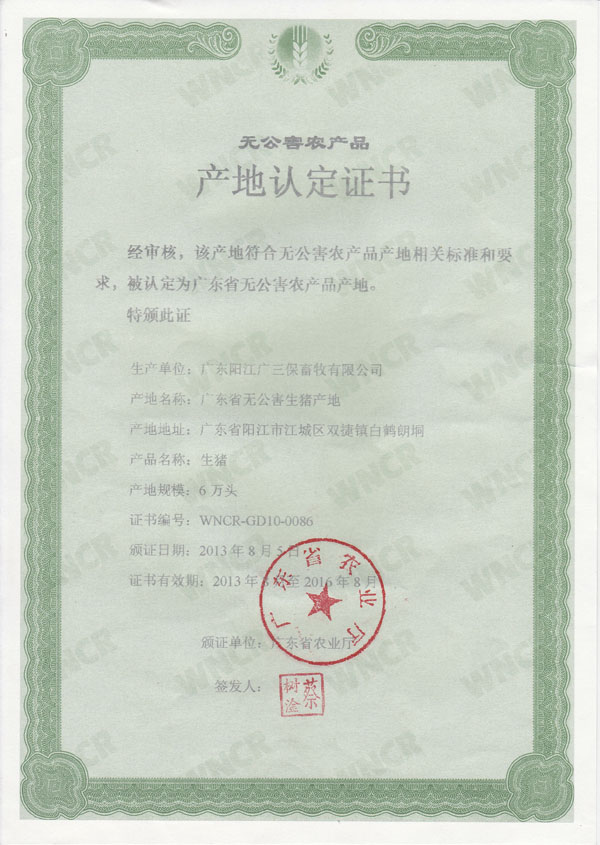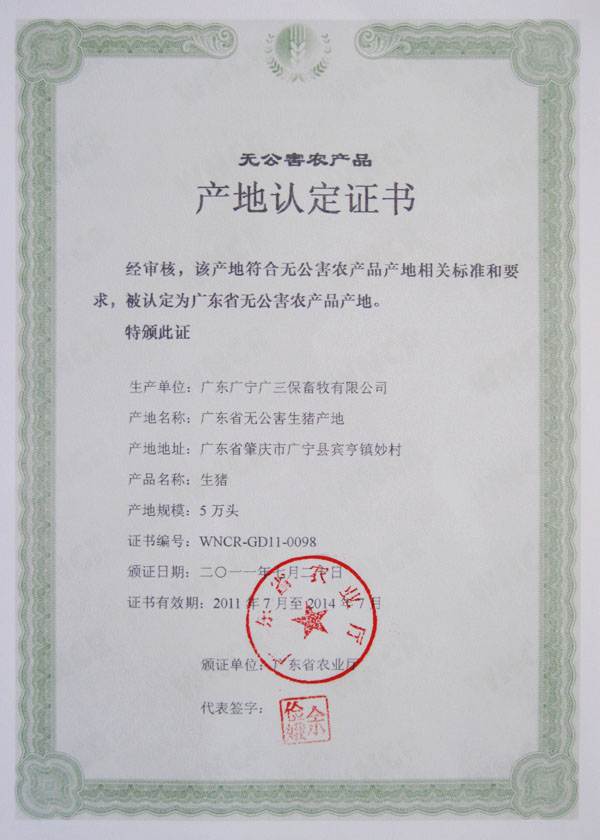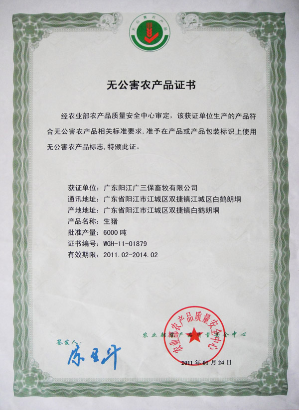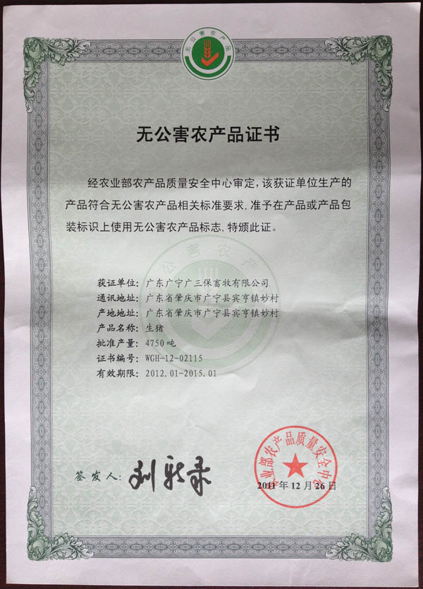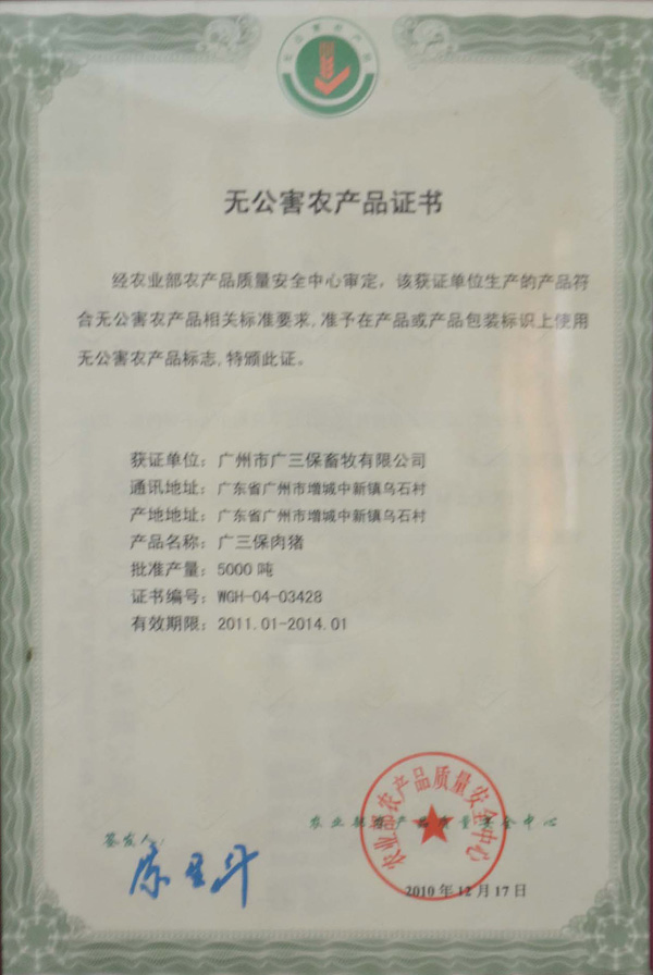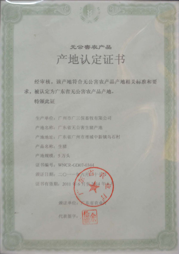 广东省无公害农产品产地认定证书1 广东省无公害农产品产地认定证书2 广东省无公害农产品产地认定证书3