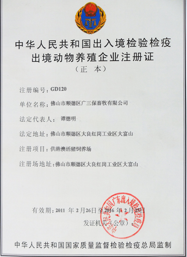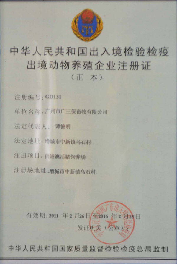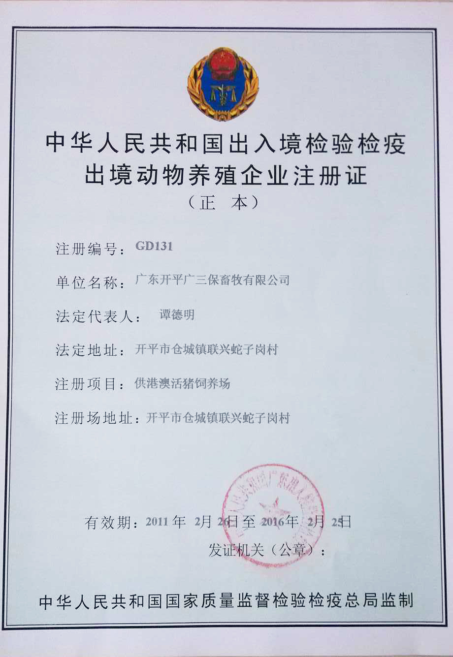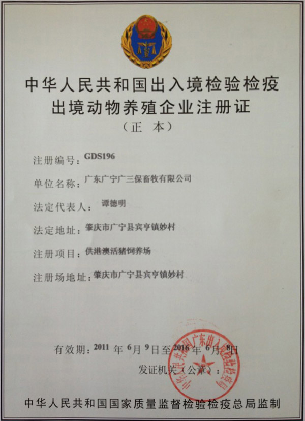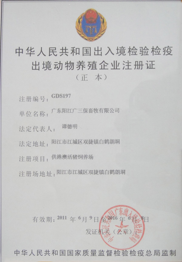 中国出入境检验检疫出境动物养殖企业广州 广宁 阳江