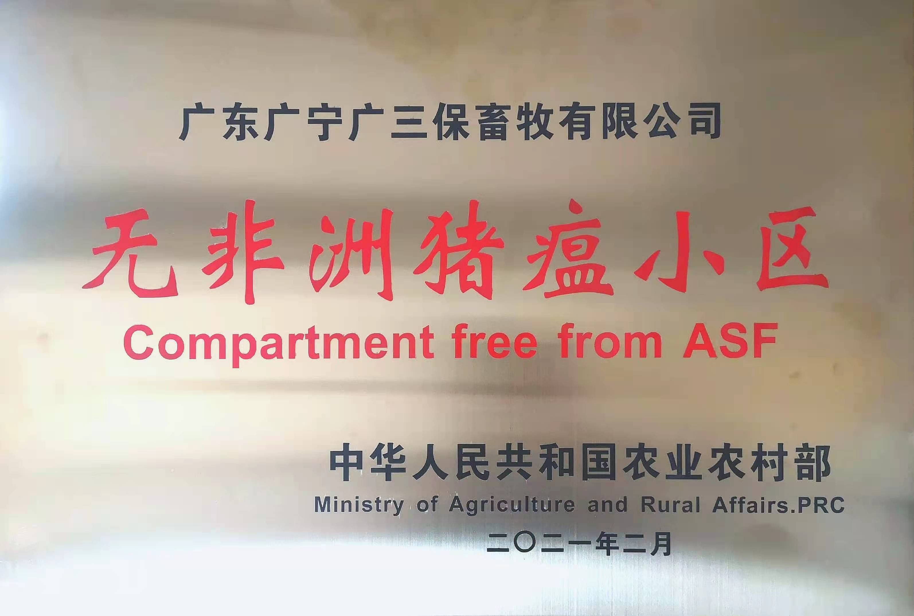 广东省畜禽养殖标准化示范场 国家级无非洲猪瘟小区(广宁) 国家级猪伪狂犬病净化场(广宁)
