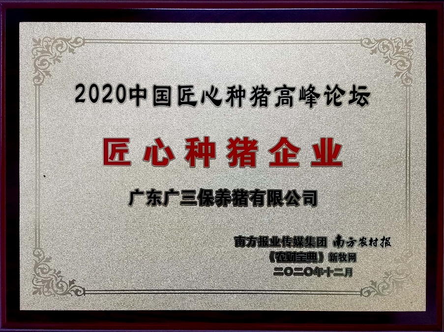 2020先进企业奖(广宁) 2020 突出贡献奖 (开平) 国家生猪核心育种场(有效期五年)