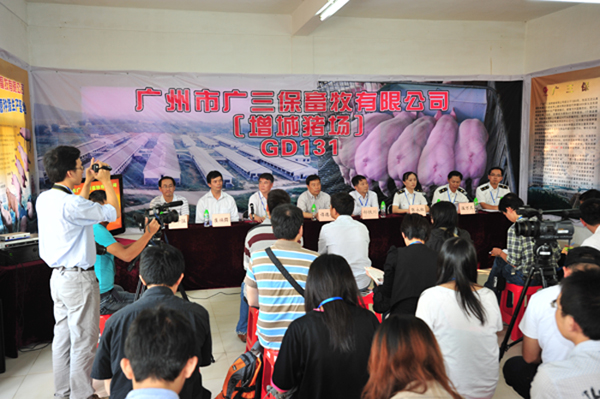 为推进香港媒体对内地输港生活必需品供应的了解,保证对香港生猪供应,经广东出入境检验检疫局及增城出入境检验检疫局推荐安排,由中联办与广东省人民政府新闻办组织的十几家香港主流媒体40多名记者于2011年10月20日下午到广州市广三保畜牧有限公司对供港活猪安全养殖出口情况进行采访。