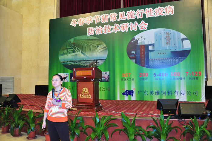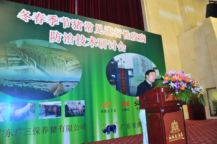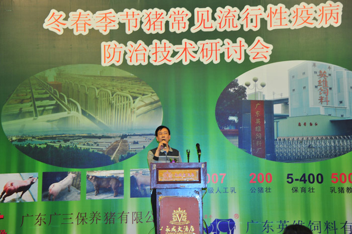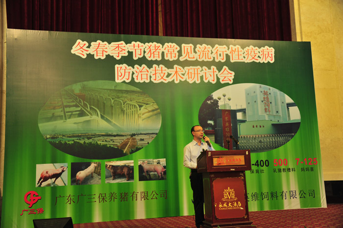 冬春季节是猪病发病率高的季节,为更切实际、更有效地防控冬春季节常见流行性疫病,广东广三保养猪有限公司与广东英维饲料有限公司于2011年11月24日在广州市番禺区永成大酒店联合举办“冬春季节猪常见流行性疫病防治技术研讨会”。受邀参加这次研讨会的嘉宾均为广东广三保养猪有限公司、广东英维饲料有限公司多年业务往来密切的重点客户及养猪业、饲料业同仁计250多人,大家欢聚一堂,共叙友谊,共谋发展。