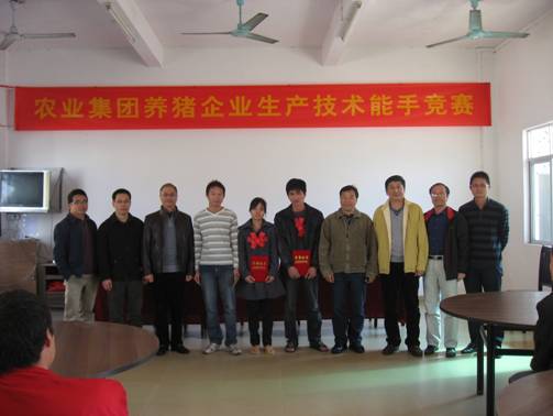 表彰大会上,集团工会王主席向大家宣布了在2011年集团工会组织的养猪企业生产技术能手竞赛中共产生了三名生产技术能手:广宁广三保庞伟成(哺乳环节),广宁广三保钟信萍(保育环节)、阳江广三保吴显文(保育环节)和两名成绩优异者:顺德广三保张竟辉(配种环节),顺德广三保杨海清(生长育成环节),并由谭总向广宁广三保的两名生产能手以及其所在班组颁发证书和奖品。