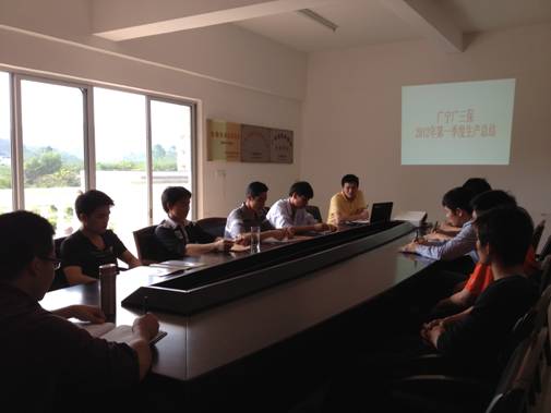2012年4月10日下午,广宁广三保召开2012年春季生产总结暨防暑降温动员大会。参会人员有广宁广三保副总经理陈预明、生产管理中心副经理曾秋荣、育种中心副经理伍锦华和负责生产工作的班组正、副经理及监工,会议由曾副经理组织与主持。