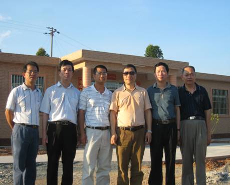 2012年5月8日,广东广三保养猪有限公司董事长谭德明先生(右三)带领农业集团资产经营部陈振壁(右一)、揭扬(右二)、崔焕粦(左二)三位副经理,到广东广三保养猪有限公司原种猪场扩建项目建设现场(广东开平广三保畜牧有限公司)进行调研,了解该项目的规划、设计、建设情况,对项目的进展表示满意。并勉励开平广三保公司领导班子成员:孙培扬总经理(左三)、陈军副总经理(左一),要严格按照农业部的有关规定对该原种猪场项目进行有序安排、精心建设,力争早日竣工、尽快投产,早出效益!
