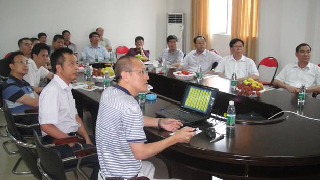 广东阳江广三保畜牧有限公司陈汉伟总经理向各级领导介绍了广东省现代农业集团有限公司及广东广三保养猪有限公司的概况,并汇报了广东阳江广三保畜牧有限公司建设、生产和经营的详细情况。