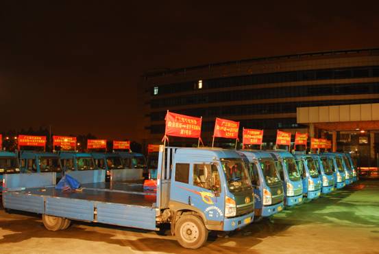 图九 十六辆运猪车顺利抵达广三保开平猪场(广东检验检疫局开平临时隔离场)