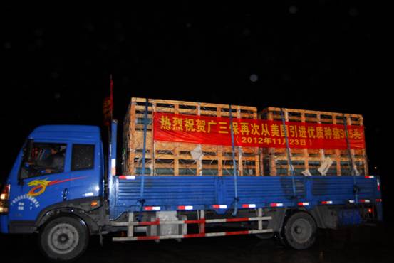 经国家质检总局和农业部批准,我司今年十一月二十三日从美国SPF原种猪场引进905头优质种猪。这是我公司在1985年、1986年、2000年和2008年多次创全国单次最大规模从美引进曾祖代优质种猪后的又一次大规模进口曾祖代种猪。