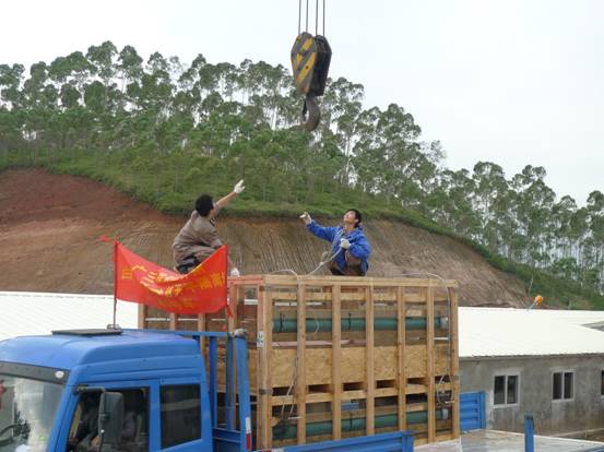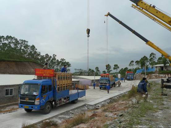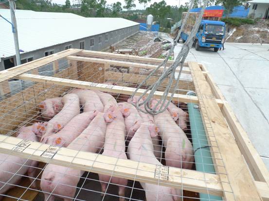 图八 种猪装车完毕,准备运往广三保开平猪场(广东检验检疫局开平临时隔离场)