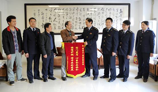 为表达感谢之情,骆善军总经理代表广州广三保向增城出入境检验检疫局送上"国门蓝盾、心系食品安全;保驾护航、情牵农企发展"锦旗。
