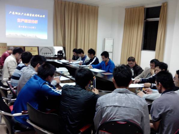 2013年4月10日晚,广东阳江广三保畜牧有限公司在公司会议室召开了第一季度(1-13周)生产技术总结会议。参加本次会议的人员有生产技术部及生产线副组长以上人员,公司领导陈汉伟、江灵透、秦荣学出席了本次会议。