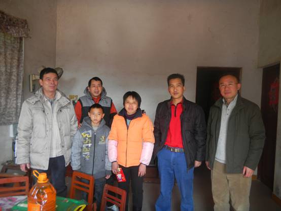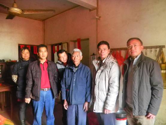 图6:宾亨镇领导及坑仔口村干部率领广三保公司管理人员进入村民李贵才(左三)家中慰问