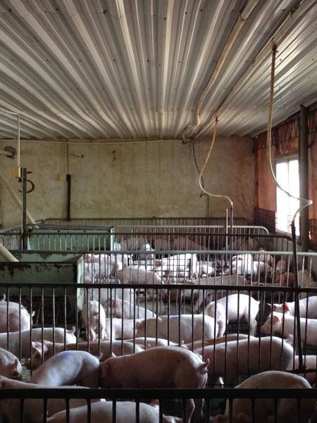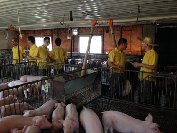与会者一行10多人,进入广宁广三保养猪生产线,对猪舍设备改造情况及使用效果进行现场考察:
